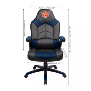 Support your favorite team while working in your office, listening to your favorite music, or just watching TV in your Officially Licensed Oversized Office Chair! This chair has an oversized seat and back for extra comfort. Embroidered team logo on the headrest. Memory foam in the seat and padded armrests make this the most comfortable chair you can buy. Unique pouch allows you to keep accessories handy and protected. 13-25/32" black powder coated nylon base and butterfly tilt mechanism. 325 lbs weight capacity. Product dimensions: 45 ¾ x 26 x 49 ½; weighs 37 pounds.