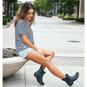 The ROMA CHELSEA Rain Boot is the best way to add a bit of feminine edge to any outfit. Comfortable yet fashionable, these boots are perfect for any weather or activity and will surely turn heads wherever you wear them. Completely waterproof to keep your feet dry in all types of weather. Vegan - Eco-Friendly - Natural Rubber - Quick Dry Fitted Cotton Lining. For every pair of ROMA Boots sold, a brand new pair of rain boots are donated to a child living in poverty. For You. For All.