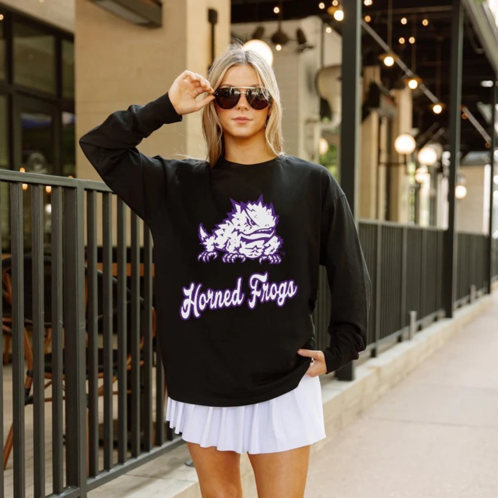 Bring the energy of the game to your wardrobe with our Honor Roll oversized long sleeve tee with ribbed neckline and cuffs. Showing off your Rivalicious Spirit will be a breeze.