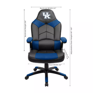 Support your favorite team while working in your office, listening to your favorite music, or just watching TV in your Officially Licensed Oversized Office Chair! This chair has an oversized seat and back for extra comfort. Embroidered team logo on the headrest. Memory foam in the seat and padded armrests make this the most comfortable chair you can buy. Unique pouch allows you to keep accessories handy and protected. 13-25/32" black powder coated nylon base and butterfly tilt mechanism. 325 lbs weight capacity. Product dimensions: 45 ¾ x 26 x 49 ½; weighs 37 pounds.