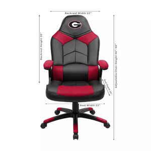 Support your favorite team while working in your office, listening to your favorite music, or just watching TV in your Officially Licensed Oversized Office Chair! This chair has an oversized seat and back for extra comfort. Embroidered team logo on the headrest. Memory foam in the seat and padded armrests make this the most comfortable chair you can buy. Unique pouch allows you to keep accessories handy and protected. 13-25/32" black powder coated nylon base and butterfly tilt mechanism. 325 lbs weight capacity. Product dimensions: 45 ¾ x 26 x 49 ½; weighs 37 pounds.